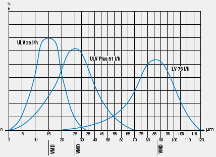 Distribución típica de las gotas con el proceso de nebulización ULV