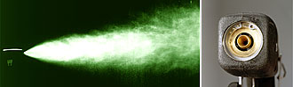velocidad, pulverizándose en finísimas gotas de aerosol, formando una niebla